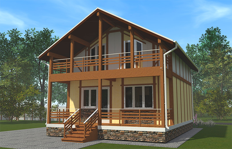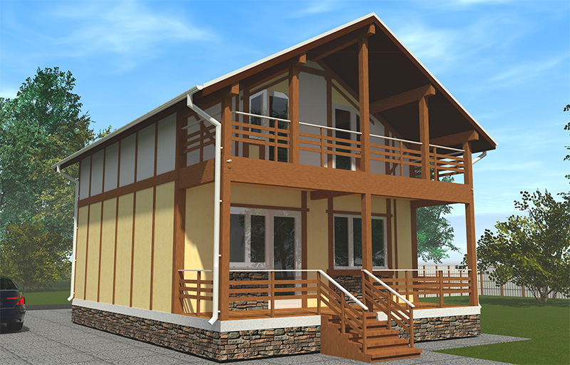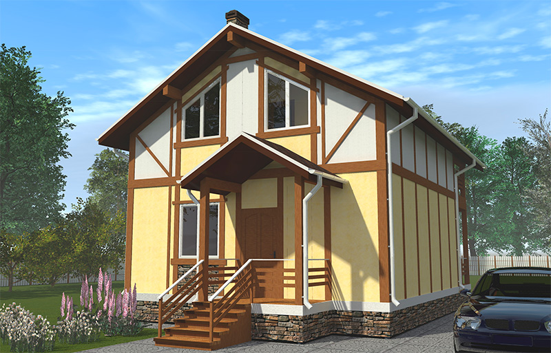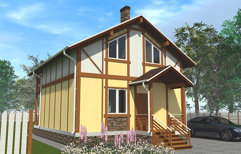 Наружная отделка — штукатурка, деревянные накладки "под фахверк"