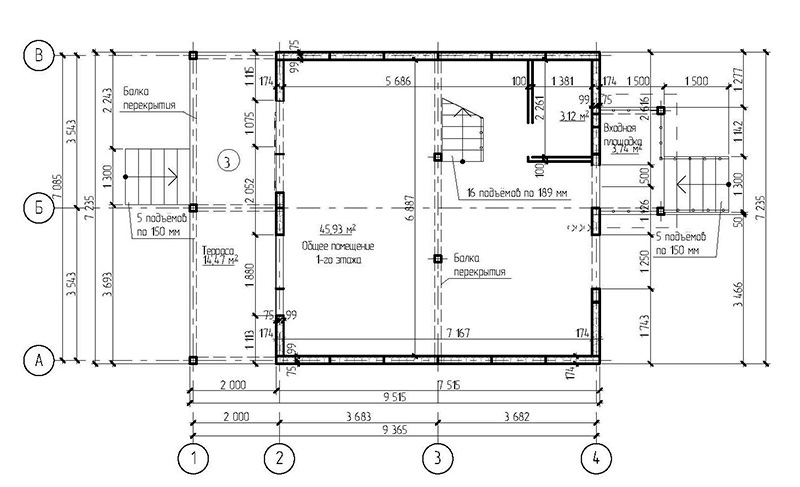Фундамент — деревянный ростверк на винтовых сваях